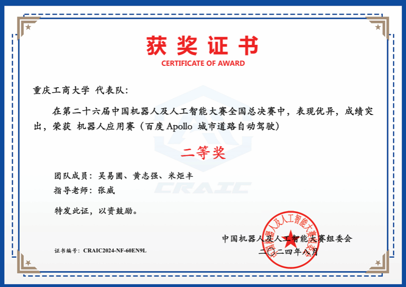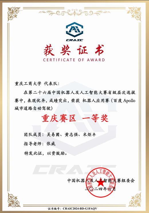 我校yl23455永利集团的参赛团队“9961永不妥协”(成员:吴易圃、黄志强、米炬丰,指导老师:张威)在“百度Apollo城市道路自动驾驶”赛项中,继重庆赛区荣获一等奖后,成功晋级全国总决赛,经过一番激烈角逐喜获二等奖。这已是我院连续第三年参与该赛项,且成绩逐年显著提升,体现了我院智能车辆工程专业人才培养模式改革初见成效。