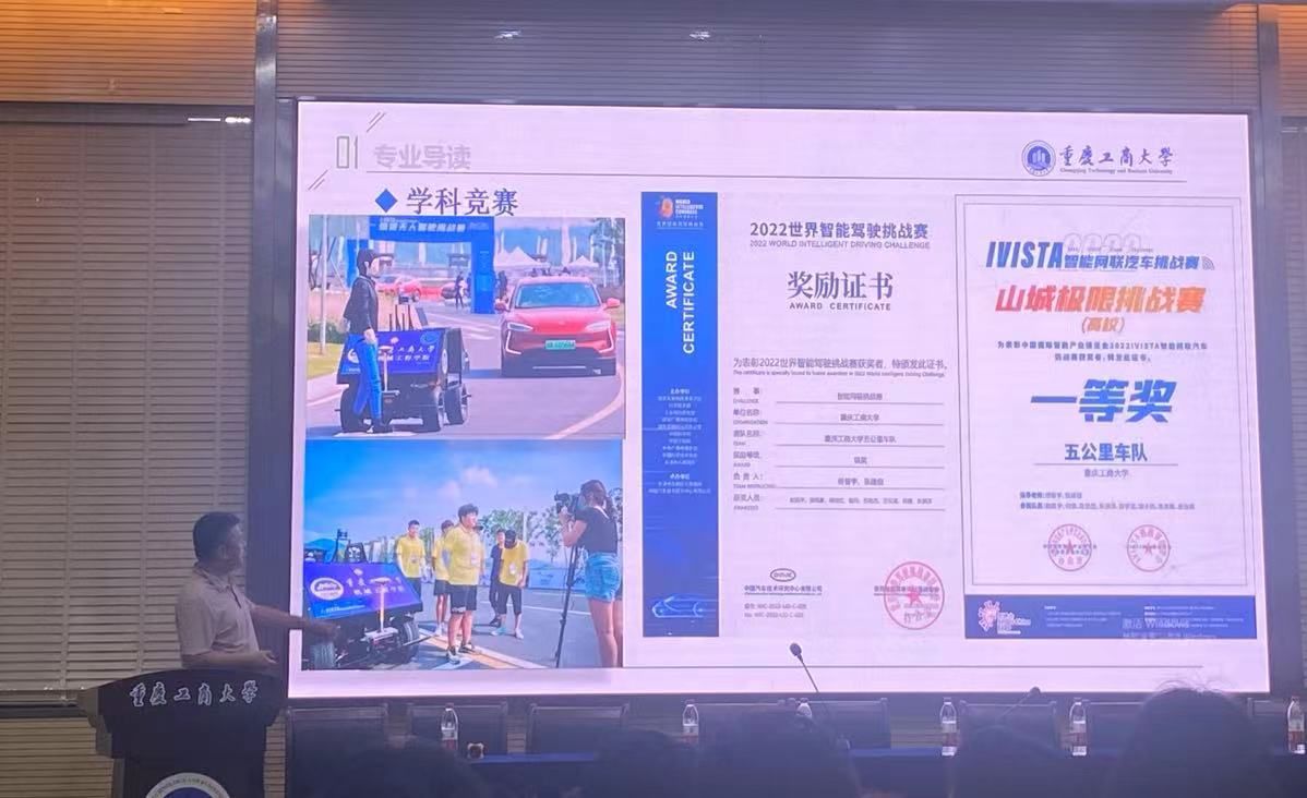 在了解了智能车辆专业当前发展背景之后,杨主任即对专业课程提出:智能车辆是一个跨学科领域,涉及计算机科学、电子工程、机械工程等多个学科,想要学好这一专业需要学生努力提升各学科素养能力。智能车辆工程人才培养带有鲜明的多学科交叉融合特点。大学前两年主要夯实基础,学生需要学习数学、计算机、电气、控制、力学等学科的相关专业基础课;后两年,传统专业课程与新工科专业课程相得益彰,个性化发展选修课引领学科前沿,测控技术和工商融合这两大类中涉及多门特色专业课程满足学生多元化发展需求,全面提升学生的工程素质与学术创新能力。此外,更是向新生们展示了我院荣获的各种学科竞赛,世界智能驾驶挑战赛的获奖证书,同时介绍专业相关的科研项目和实验平台,激发新生的科研兴趣,鼓励他们参与科研项目,培养科研能力和创新精神。