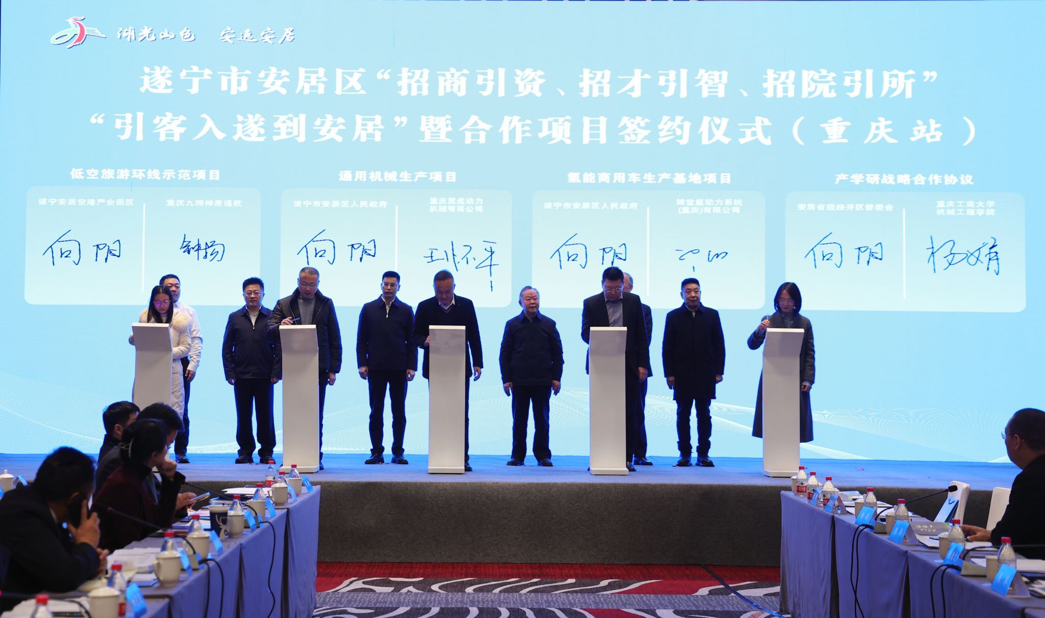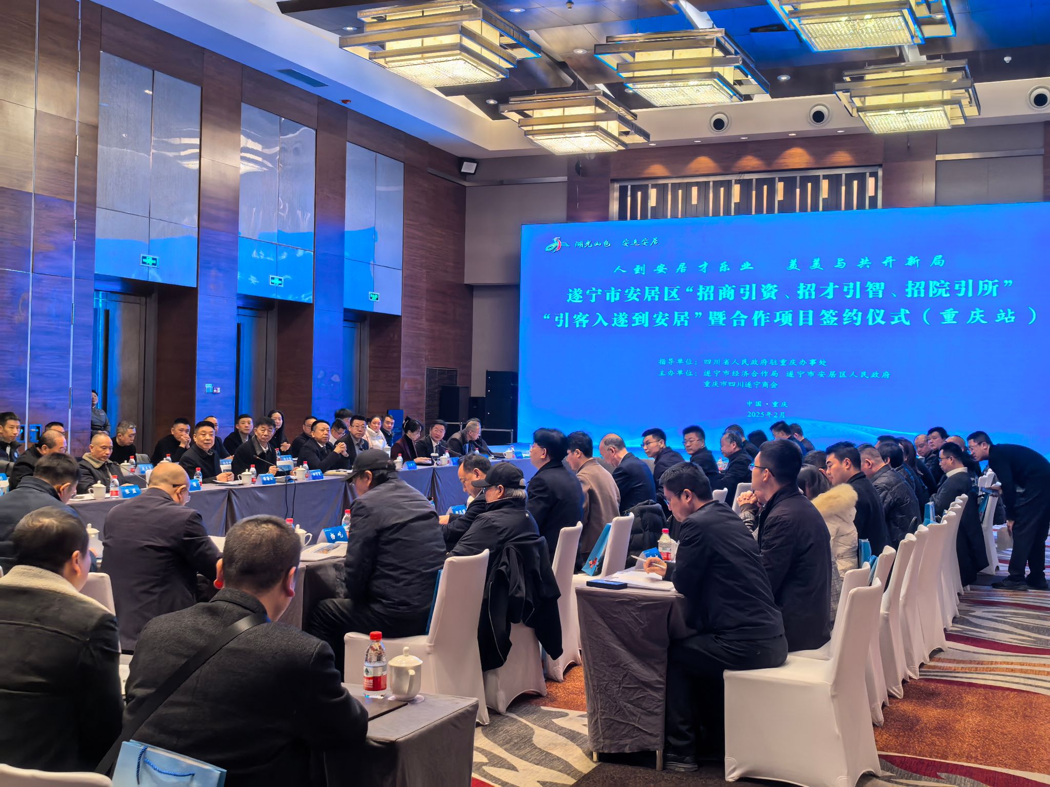2月7日,yl23455永利集团党委书记杨娟出席由四川省人民政府驻重庆办事处指导,遂宁市经济合作局、遂宁市安居区人民政府、重庆市遂宁商会主办的遂宁市安居区“招商引资、招才引智、招院引所”“引客入遂到安居”暨合作项目签约仪式(重庆站),并与安居经开区签订产学研战略合作协议。