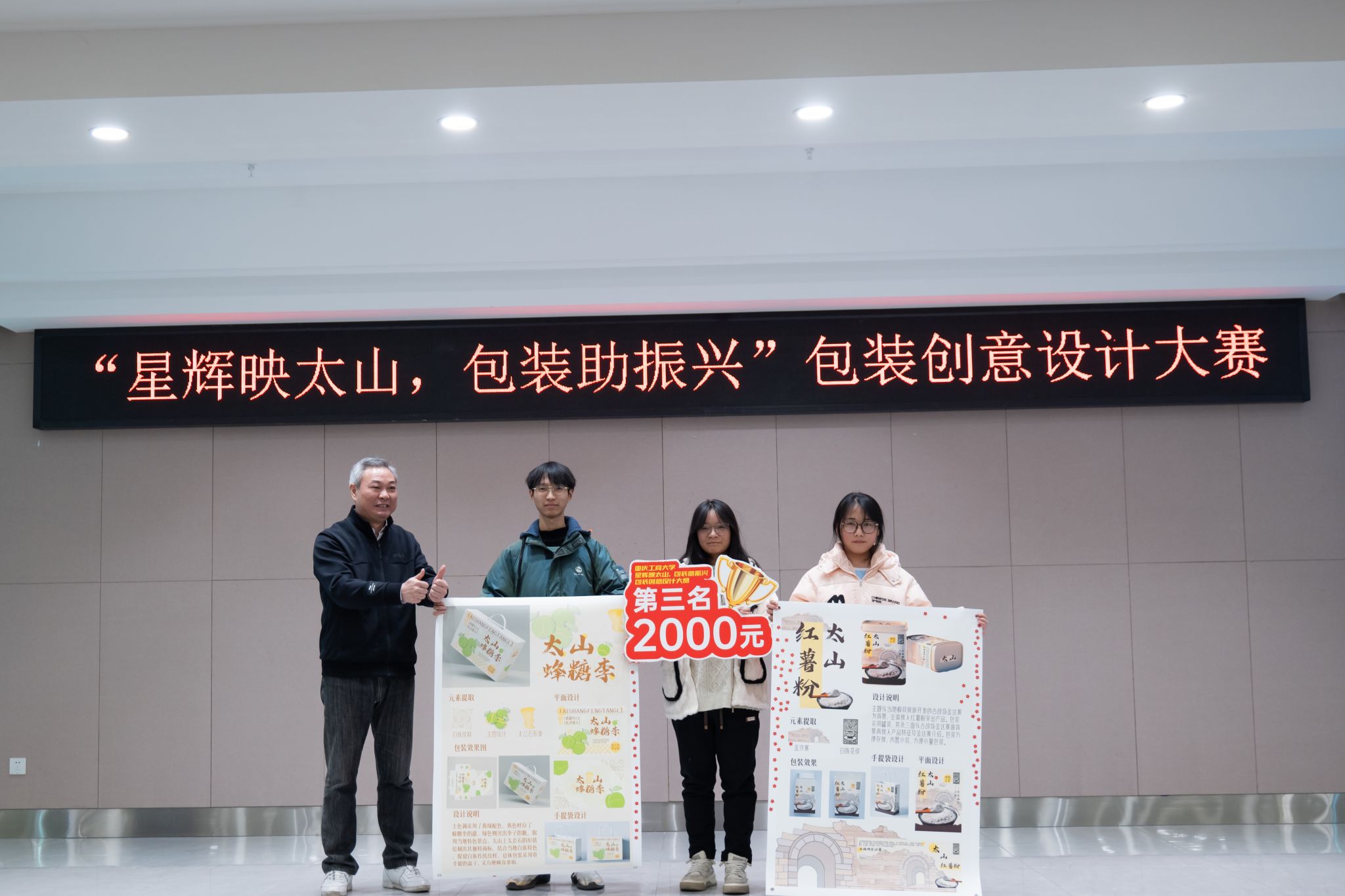 “星辉映太山,包装助振兴”包装创意设计大赛在掌声和欢呼声中落幕,这场来源于实际需求的专业实践能力展示比赛,展示我校学子服务乡村振兴的青春力量。