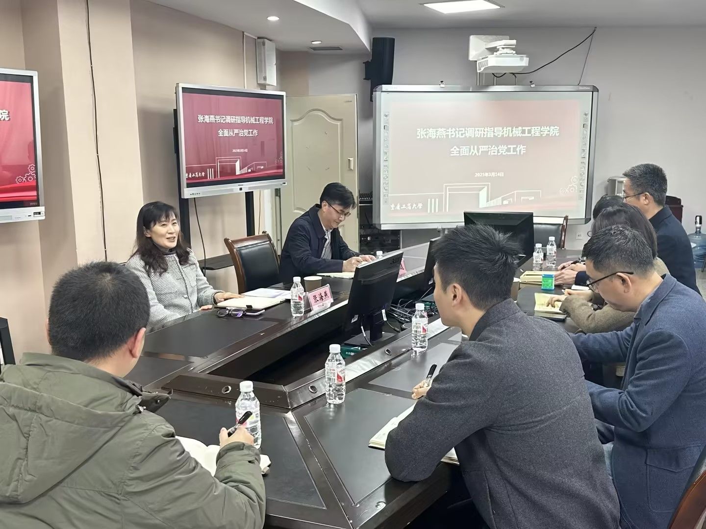 3月14日,学校党委常委、纪委书记、市纪委驻学校监察专员张海燕调研指导yl23455永利集团全面从严治党工作。纪检监察室主任苏治远、yl23455永利集团全体班子成员参加。
