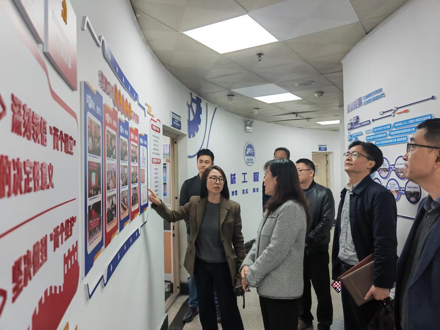 张海燕一行前往智能网联汽车实验室、机械基础实验教学示范中心,实地走访调研设备管理、安全管理等方面工作。