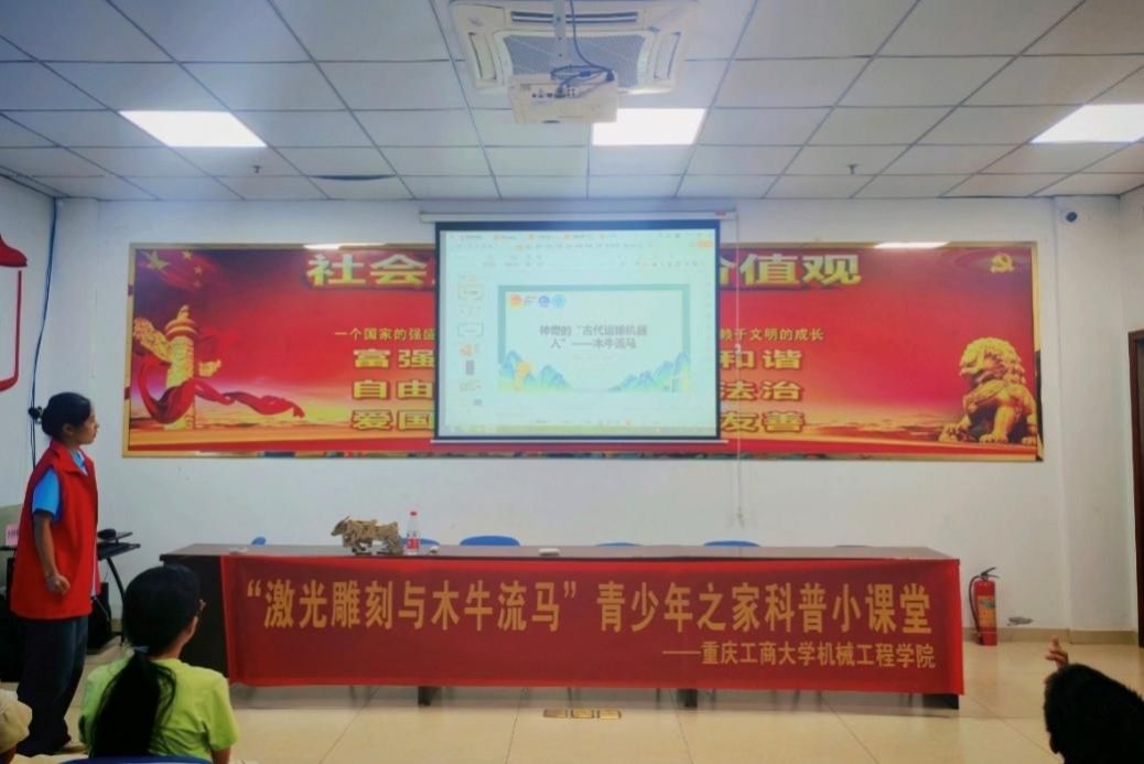 7月22日上午9:30,一场别开生面的科普课程在重庆市九龙坡区朝阳路兰花社区拉开帷幕。来自yl23455永利集团的张槿秋与郎巧巧两位同学,为社区的孩子们带来了关于激光雕刻与木牛流马的精彩知识分享,40分钟的课堂里,孩子们在生动的讲解与直观的体验中,近距离感受了传统机械智慧与现代科技的独特魅力。