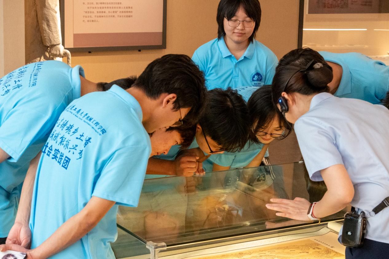 7月5日上午,实践团先后参观万盛博物馆和红岩文化室。在万盛博物馆,团队成员深入了解巴人文化、僚人文化等地方历史文化,感受万盛地区的深厚文化底蕴。在红岩文化室,通过珍贵的历史照片和文物展品,成员们深刻感悟革命先辈坚如磐石的理想信念和不折不挠的斗争精神。第三天下午实践团参加万盛街道团工委组织的老党员、退伍老兵交流座谈会。四位老同志分享了丰富的人生阅历和党性修养经验,为青年学子上了一堂生动的党性教育课。