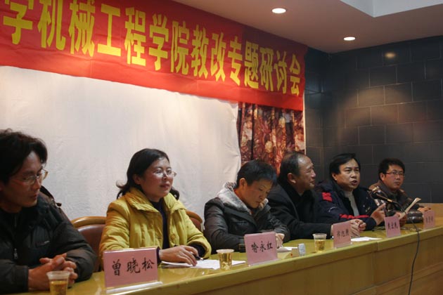 首先,学院院长张贤明作了讲话。他首先回顾了学院近年来在教改方面所采取的举措,明确了学院需要加大教学改革力度、推动学科建设上档提速、加大人才培养含金量的理念;接着着重就学院的包装工程专业,结合株洲工学院、西安理工大学等国内机械、包装专业知名院校分析了目前国内其他同类高校相关专业的发展形势,通过列举学院现有一大批包装企业支撑、正在组建一个年轻化的教学科研团队、有很多日元贷款的设备且目前市场上对该专业毕业生的需求量很大等优势,勉励学院教职员工培养创新精神,探索特色的发展道路,将教学与科研、产学研结合起来,力争把包装工程专业办成在全国都有特色的知名专业。