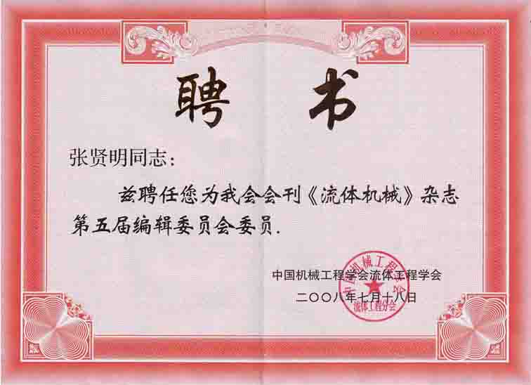 中国流体工程学会第五届理事会换届大会同期召开。经学会推荐、专家评议、中国机械工程学会审批,来自清华、浙大、国防科大、天大、华中科大、西交大、中国科大、川大、中国农大等的103位专家组成了新的理事会。我校yl23455永利集团院长张贤明研究员受聘为学会委员和理事,同时被国务院学位办“学位与研究生教育重要刊物”――《流体机械》聘为编委。会上由中国机械工程学会领导宣读了中国机械工程学会文件,并颁发了委员聘书和编委聘书。