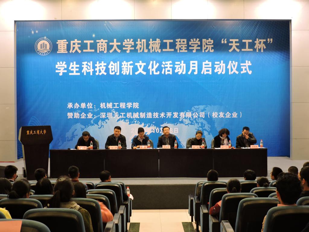 为展示yl23455永利集团学科专业的学术创新实力,带动同学们积极参加科技活动月相关活动和各大赛事,营造我院科技创新的氛围。我院于2016年10月28日14:00在南岸校区博智楼7100举行了第十五届“天工杯”科技文化活动月启动仪式。本次活动邀请到场嘉宾有学校教务处处长靳俊喜、学生处处长罗勇、校团委书记杨娟,我院书记刘洋、院长杜力、副院长杨祖彬、学院院长助理李平及全院教职工和各年级学生代表参加了开幕式。