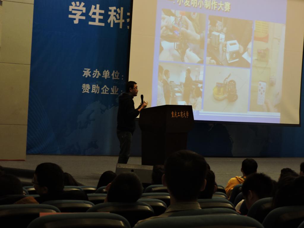 开幕式由学院党委书记刘洋主持,刘洋书记致开幕词并介绍出席本次活动的嘉宾、领导及老师;学院副院长杨祖彬介绍了今年我院学生参加重庆市、地区和全国科技竞赛的相关情况,并逐一列举了学长们所获得的奖项,使16级新生对学院的学习生活更加向往,对各项学科竞赛充满了期待;教务处处长靳俊喜受邀代表职能部门讲话,表达了学校对于科技创新的重视,多个相关职能部门同心协力支持学院科技创新活动,学校将以新的人才培养方案的改革为契机,引导各学院形成“人人参赛,院院办赛”的良好氛围;学院分团委副书记袁娅婷介绍了本次科技活动月的系列赛事的具体安排和相关组织的事宜,倡导同学们踊跃报名;学院院长助理李平博士详细介绍了每一项赛事的特点、适合的专业、组队的建议以及对接重庆市乃至国家级大学生科技赛事的情况,并例举和分析了以往学生的科技作品,帮助学生克服畏难情绪,点燃同学们对比赛的激情;最后,杜力院长从“四个问题”出发,用了四个关键词“感谢、祝贺、分享、期望”,告诉在场大学生,学院科技活动的冠名不仅是经费方面的赞助,更凝聚着校友对母校的厚爱、对学弟学妹的关爱与期望;同时,这一学院坚持十五年的最大型的活动,肩负着传承与创新的使命,院长认为科技活动就是向同学们诠释着三个字——“我们能”!希望我院学子“聪明睿智、刻苦实干、严谨细致、团结协作”,在科技活动中充分展示工程学科同学的自信与魅力。