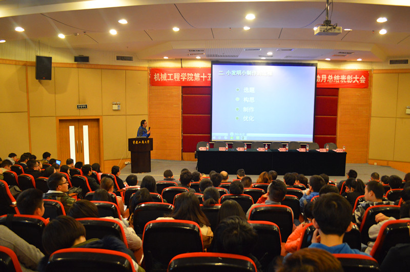 随后,各项赛事指导老师分别介绍了科技作品小发明小创作比赛、包装设计大赛、机器人组装设计大赛、工程制图大赛、科技论文大赛、汽车评估师大赛、3D打印大赛七项赛事的比赛情况。机械师团队代表黄凯作为学院的科技创新积极分子,以自身参加科技活动的经历,引导学弟学妹积极参加科技竞赛。迄今为止,他所在的机械师团队总计获得国家级奖项23项,省级奖项28项,奖金累计超过18万元。