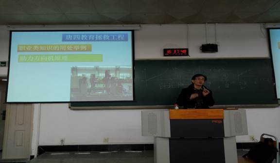 唐家兵长期从事汽车试验设备及试验方法的研究,本着关心中国的教育现状,期望为中国教育改革和进步奉献自己的力量的热情,从素质教育和职业教育入手,以非常诚恳的态度、非常朴实的语言给在座200余学生进行了很好的专业诠释,回答了从基础通识课、专业基础课、专业课程在企业实际中的应用,并以机电设备工程案例进行讲解。此外,唐总还在列举大学生学习与生活兴趣爱好的关系,以自己勤奋态度进行很好的案例分析,赢得了学生的热情掌声。