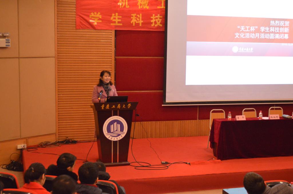 学生科技创新文化活动月活动作为我院的品牌活动之一,一直以来都作为学院引导学生熟悉、热爱本专业的桥梁和纽带,本次活动得到深圳天工科技开发有限公司的大力支持和赞助。历时一个多月,包括科技作品小发明小创作比赛、包装结构设计大赛、包装创意设计大赛、机器人大赛、工程制图大赛、科技论文大赛、汽车发动机拆装大赛、汽车评估师大赛、3D打印大赛,共有345个团队,1314人次参加,参与率达85%。首先,学院院长杜力教授发言,她对整个活动情况进行了点评,并以年级为单位对每一个班级的参赛率进行了分析和总结,鼓励同学们更加不畏困难、勇于创新和探索,希望更多的同学参与各类科技活动,通过科技活动和竞赛来提高专业素质和综合能力。之后,9位指导老师分别对比赛情况、评分规则及优秀作品进行了详细的介绍,对参赛同学们取得的成绩给予了充分的肯定和鼓励,指出了存在的问题与不足,给出了建设性的意见和建议,并进一步动员更多地同学参与到科技活动中来。随后,激动人心的颁奖仪式正式开始,获奖代表依次上台领奖。